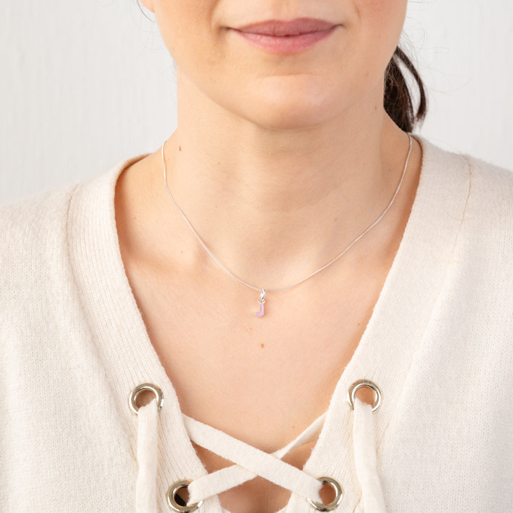 Sterling Silver Pink Enamel Initial "J" Pendant