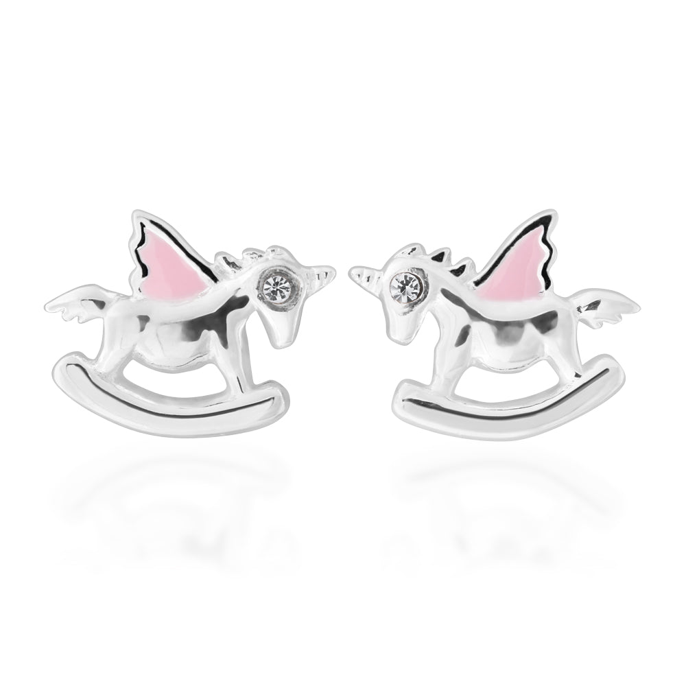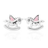 Sterling Silver Pink Enamel Rocking Unicorn Studs