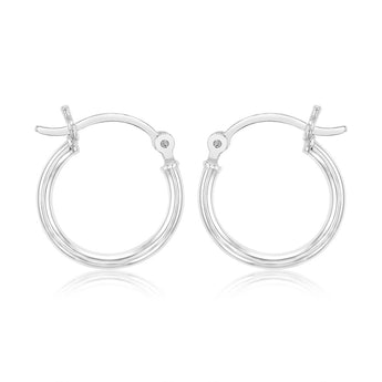 Sterling Silver Plain Round 15mm Hoop Earrings