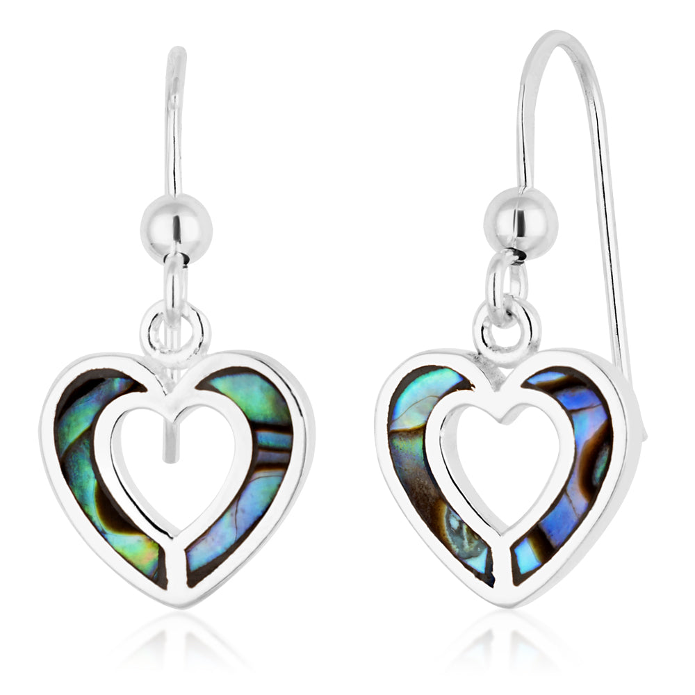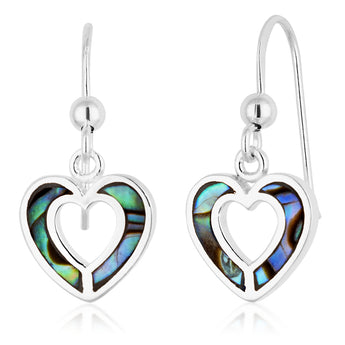 Sterling Silver Puava Shell Heart Hook Drop Earrings