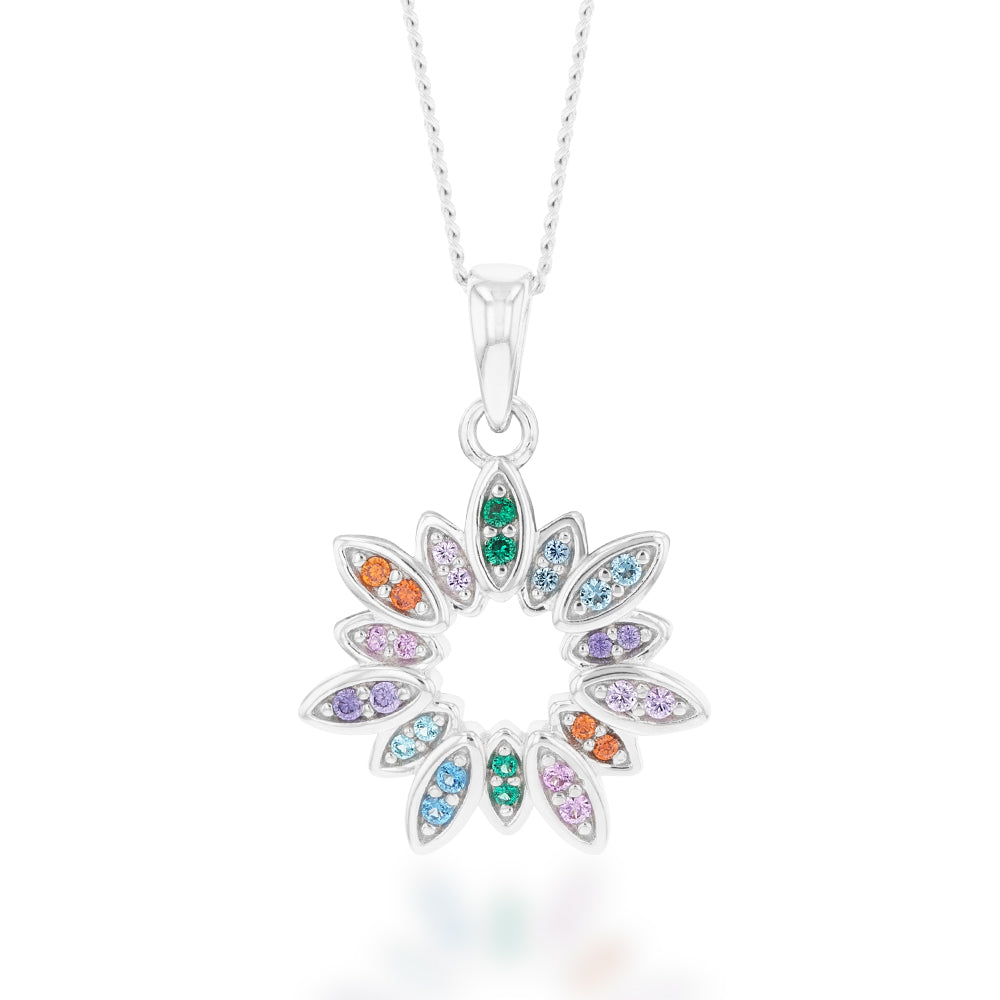 Sterling Silver Rainbow Multicolour Cubic Zirconia Flower Pendant