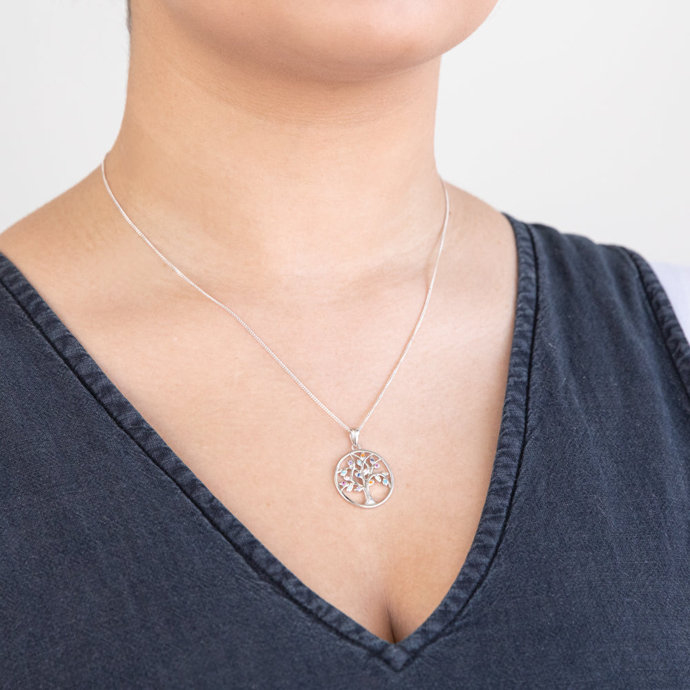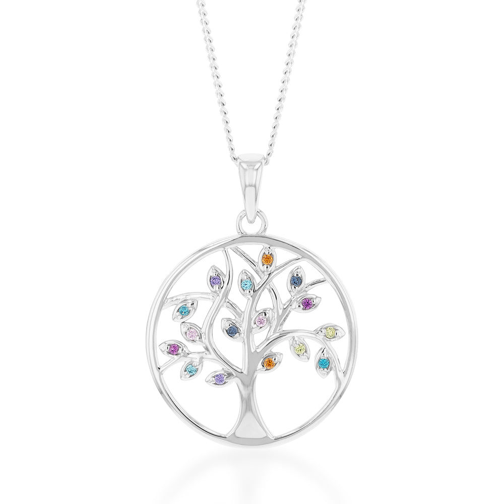 Sterling Silver Rainbow Multicolour Cubic Zirconia Tree Of Life Pendant