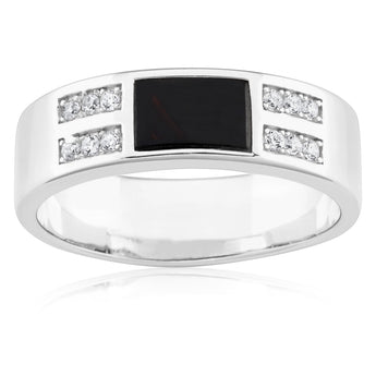 Sterling Silver Rectangle Onyx and Zirconia Gents Ring