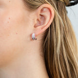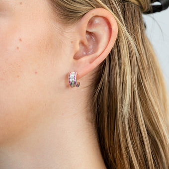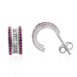 Sterling Silver Red And White Cubic Zirconia On Broad Half Hoop Earrings