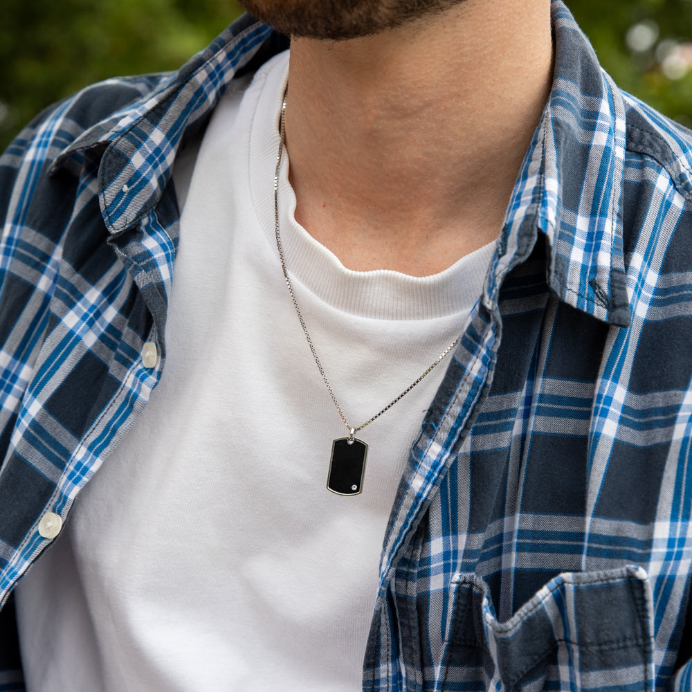 Sterling Silver Rhodium Plated Black and Zirconia Dog Tag Pendant