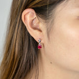 Sterling Silver Rhodium Plated Created Ruby and Cubic Zirconia Drop Earrings