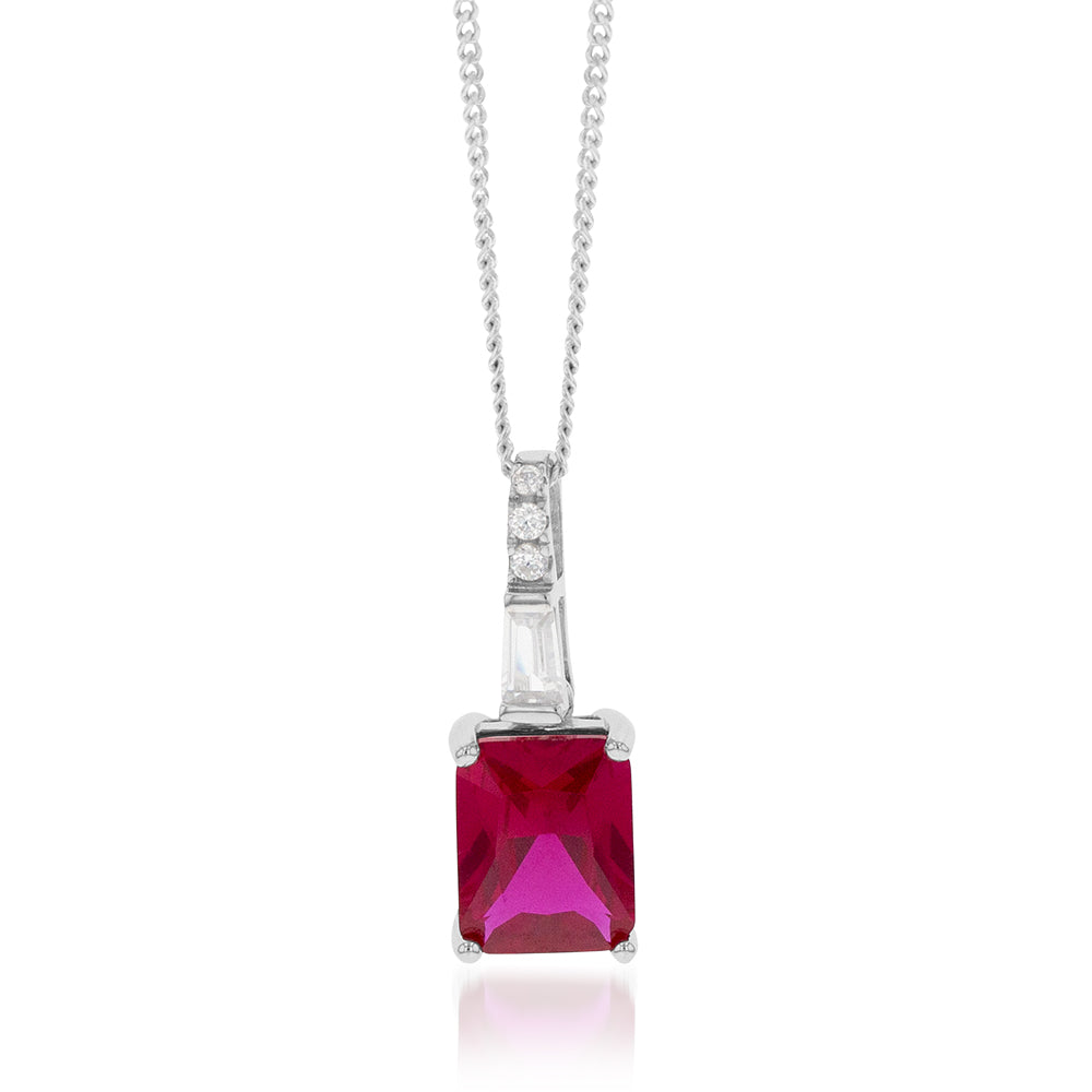 Sterling Silver Rhodium Plated Created Ruby And Cubic Zirconia Pendant