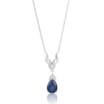 Sterling Silver Rhodium Plated Created Sapphire & Zirconia Necklet 42+3cm