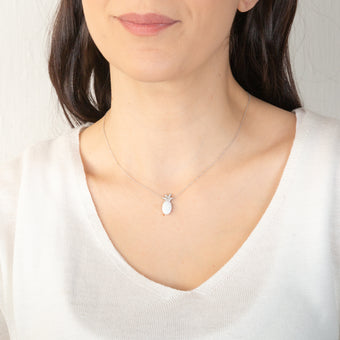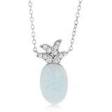 Sterling Silver Rhodium Plated Created White Opal Pendant With 45cm Chain