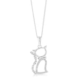 Sterling Silver Rhodium Plated Cubic Zirconia Cat Pendant
