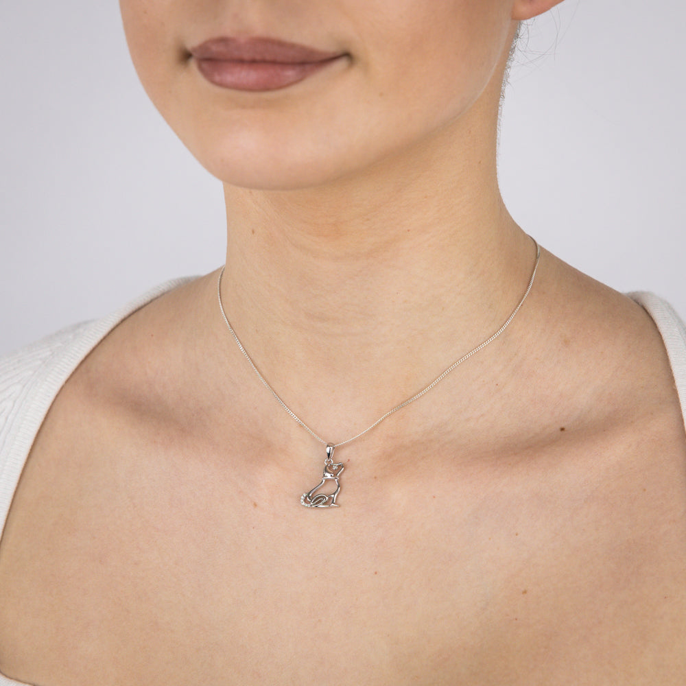 Sterling Silver Rhodium Plated Cubic Zirconia Dog Pendant