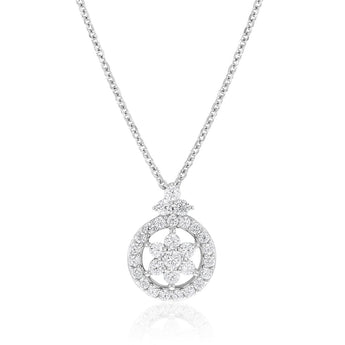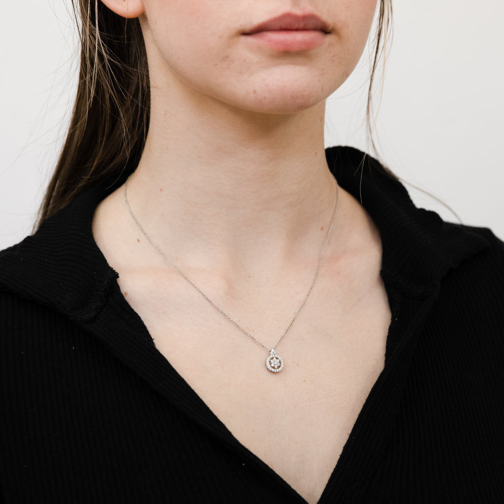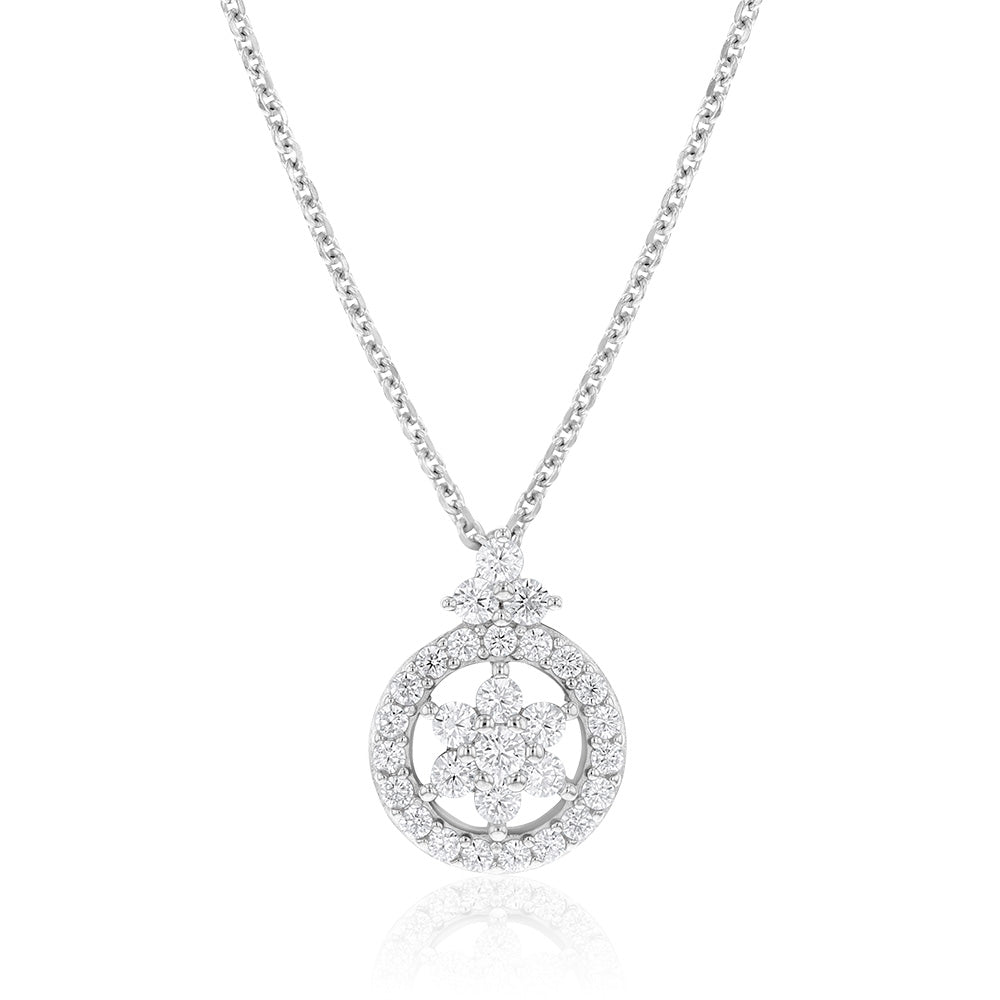 Sterling Silver Rhodium Plated Cubic Zirconia Flower Pendant On 40+5cm Chain