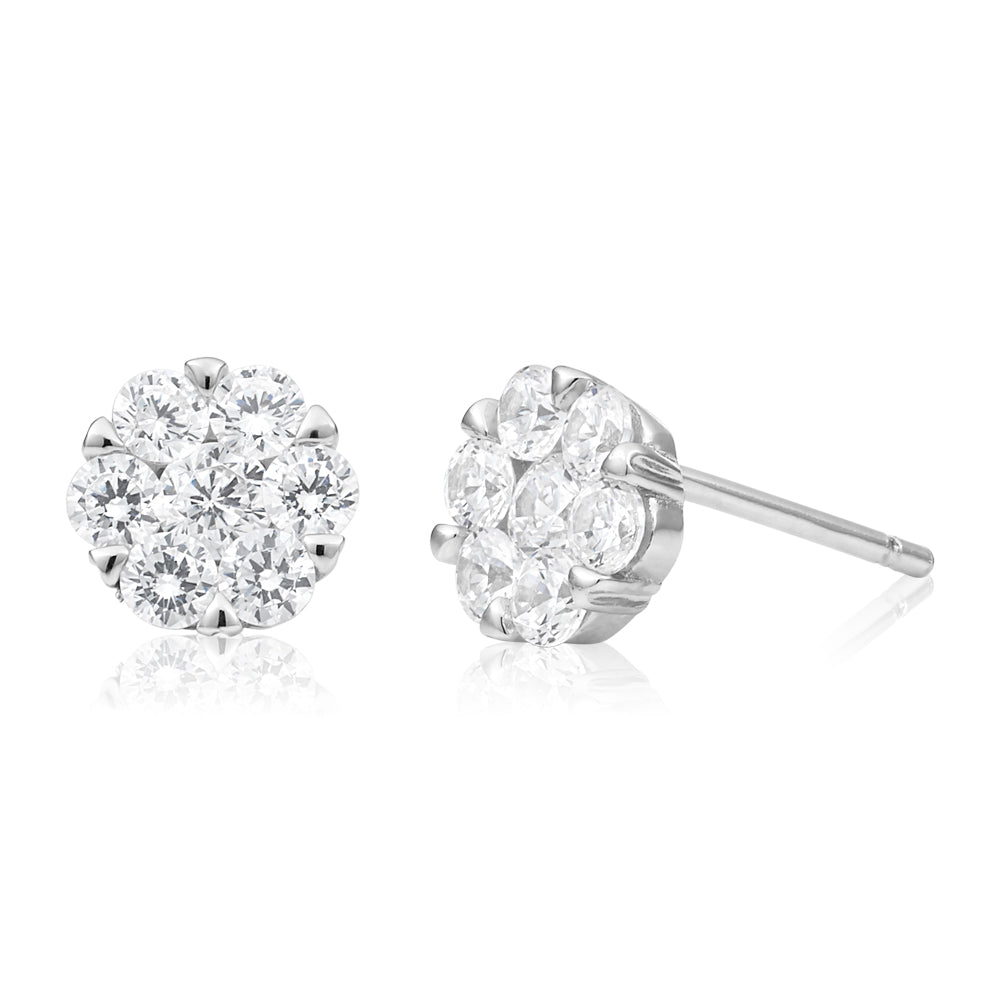 Sterling Silver Rhodium Plated Cubic Zirconia Flower Stud Earrings