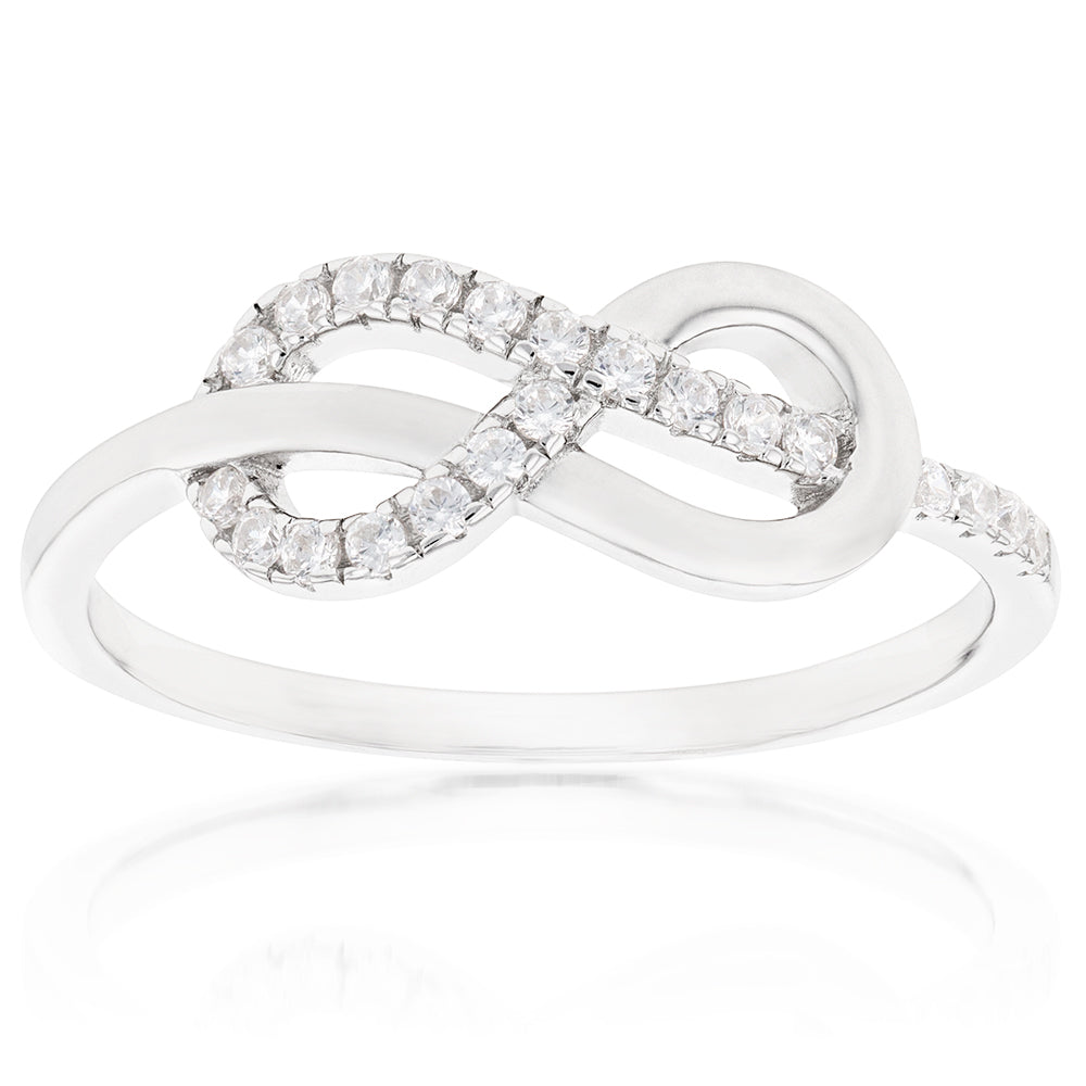 Sterling Silver Rhodium Plated Cubic Zirconia Infinity Ring