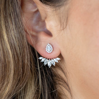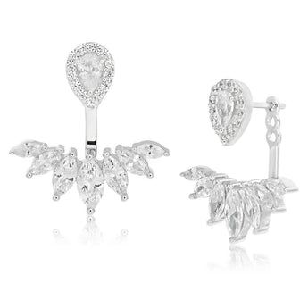Sterling Silver Rhodium Plated Cubic Zirconia Marquise Cut Ear Jacket Stud Earrings