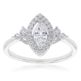 Sterling Silver Rhodium Plated Cubic Zirconia Marquise Ring