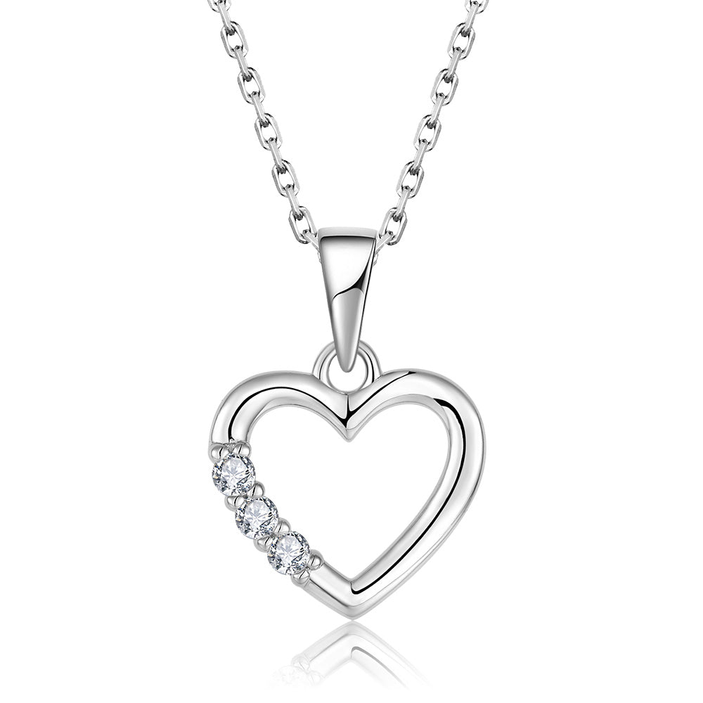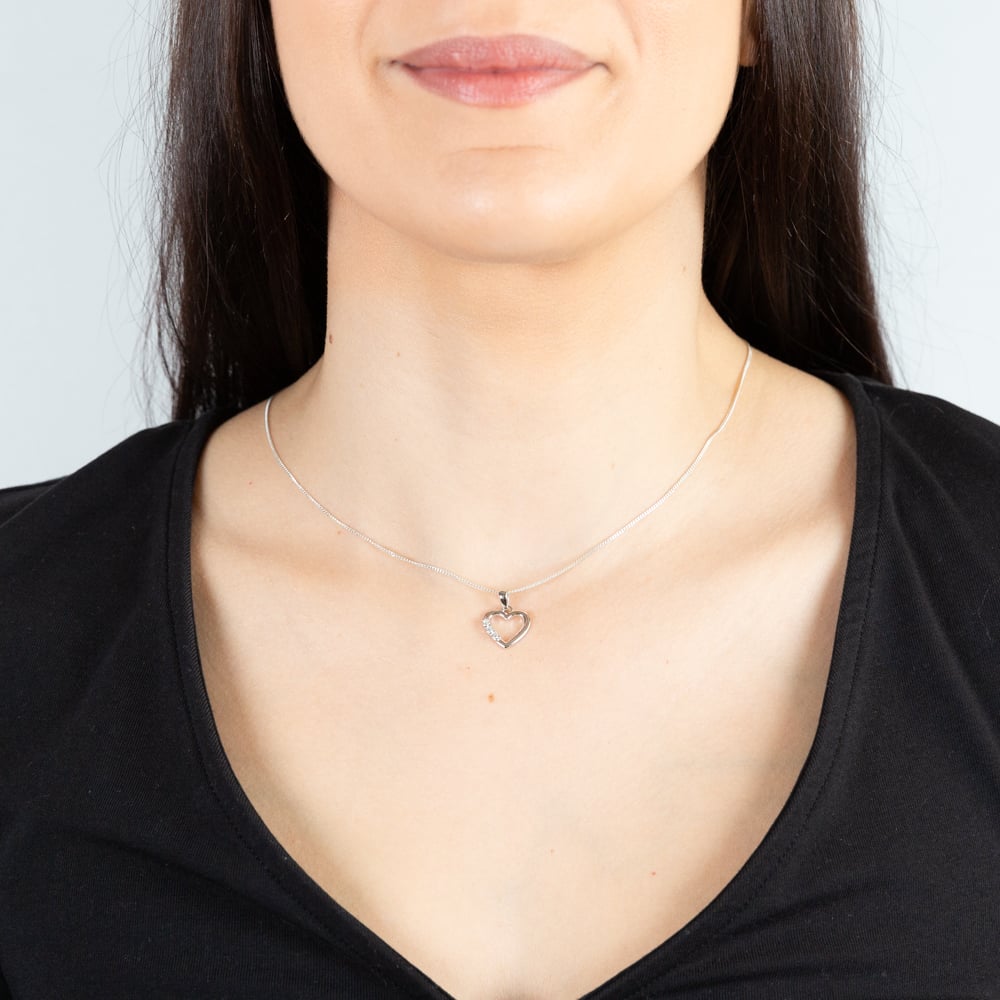 Sterling Silver Rhodium Plated Cubic Zirconia Open Heart Pendant