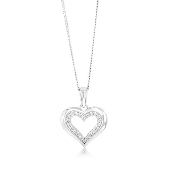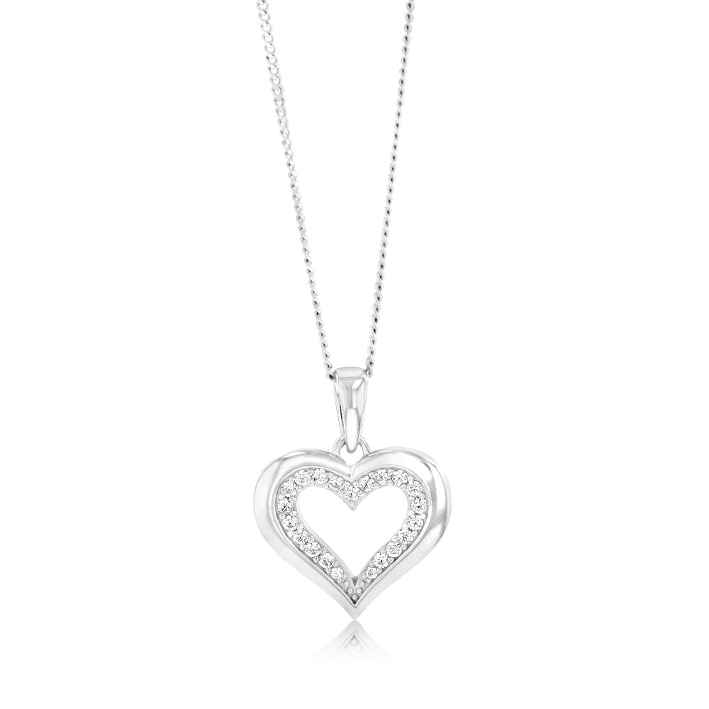 Sterling Silver Rhodium Plated Cubic Zirconia Open Heart Pendant