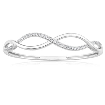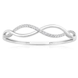 Sterling Silver Rhodium Plated Cubic Zirconia Open Twist 60mm Hinged Bangle