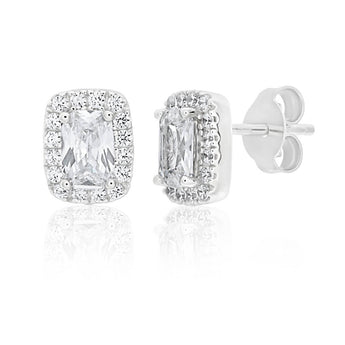 Sterling Silver Rhodium Plated Cubic Zirconia Square Halo Stud Earrings