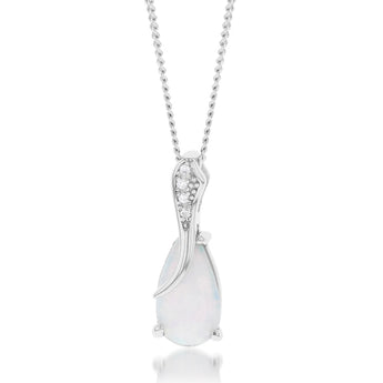 Sterling Silver Rhodium Plated Cubic Zirconia Synthetic Opal Crossover Pendant