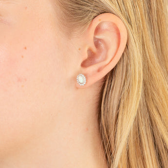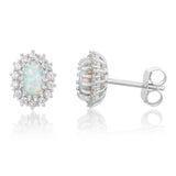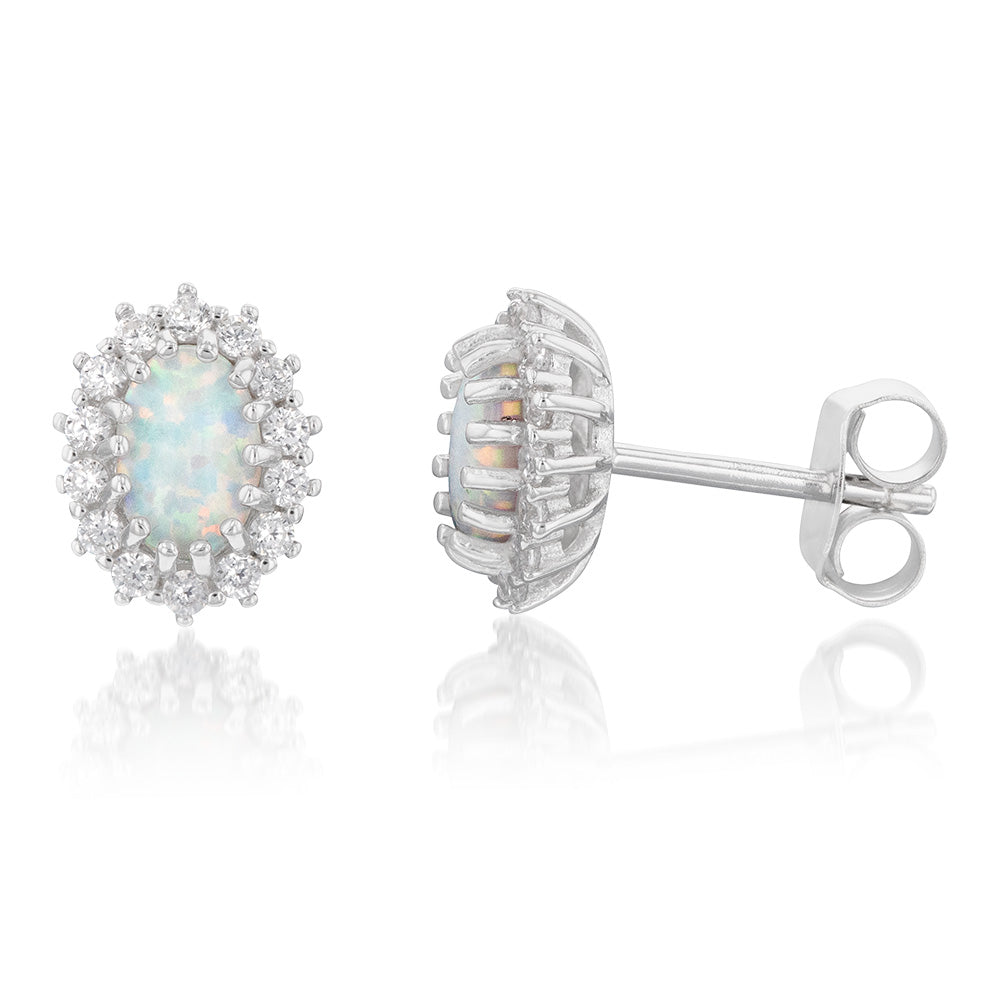 Sterling Silver Rhodium Plated Cubic Zirconia Synthetic Opal Round Stud Earrings