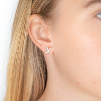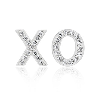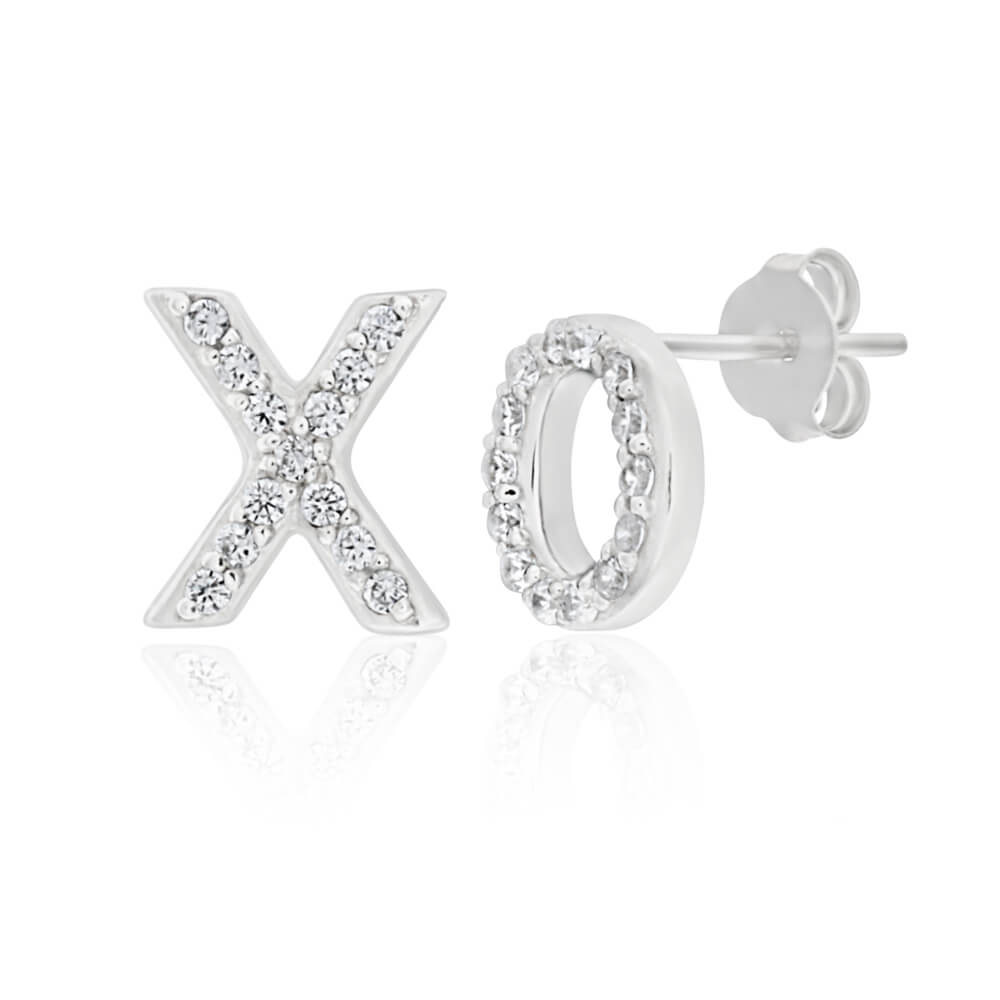 Sterling Silver Rhodium Plated Cubic Zirconia XO Stud Earrings