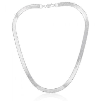 Sterling Silver Rhodium Plated Diamond Cut Strata Hbone 43cm Chain