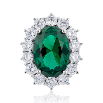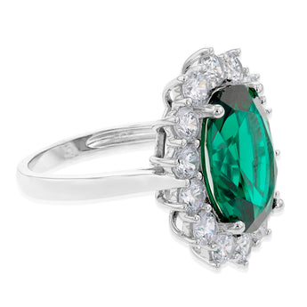 Sterling Silver Rhodium Plated Emerald-Green Cubic Zirconia Oval Ring