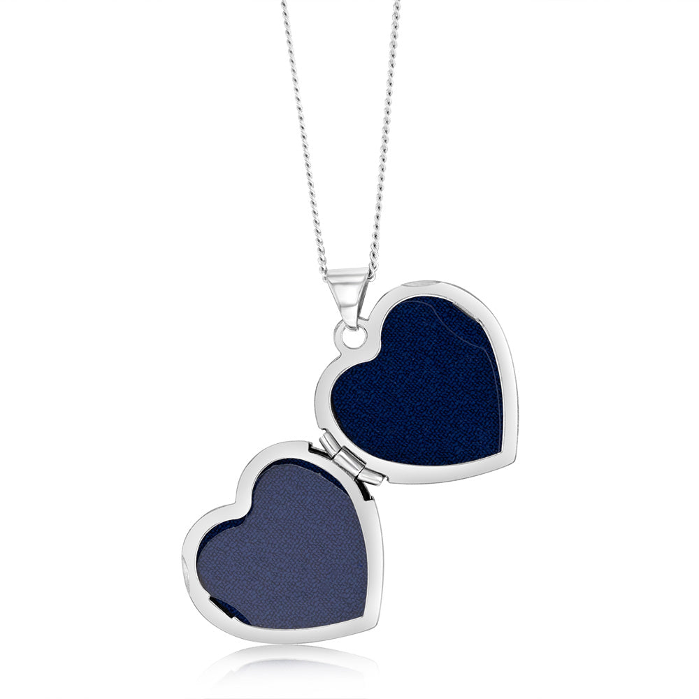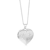 Sterling Silver Rhodium Plated Engraved Heart Locket