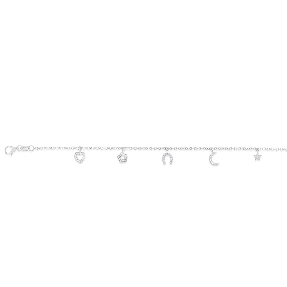 Sterling Silver Rhodium Plated Five Charm 19cm Bracelet