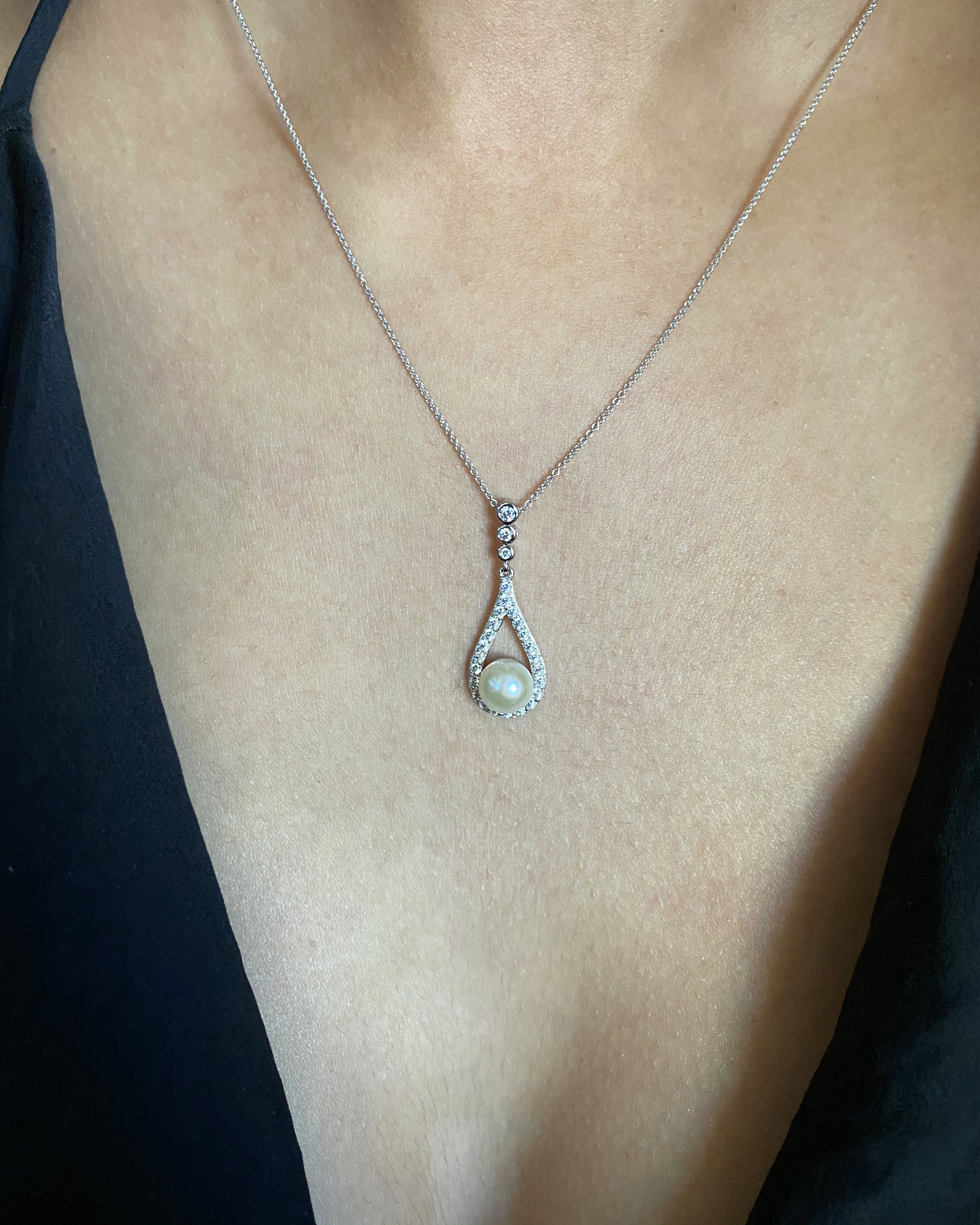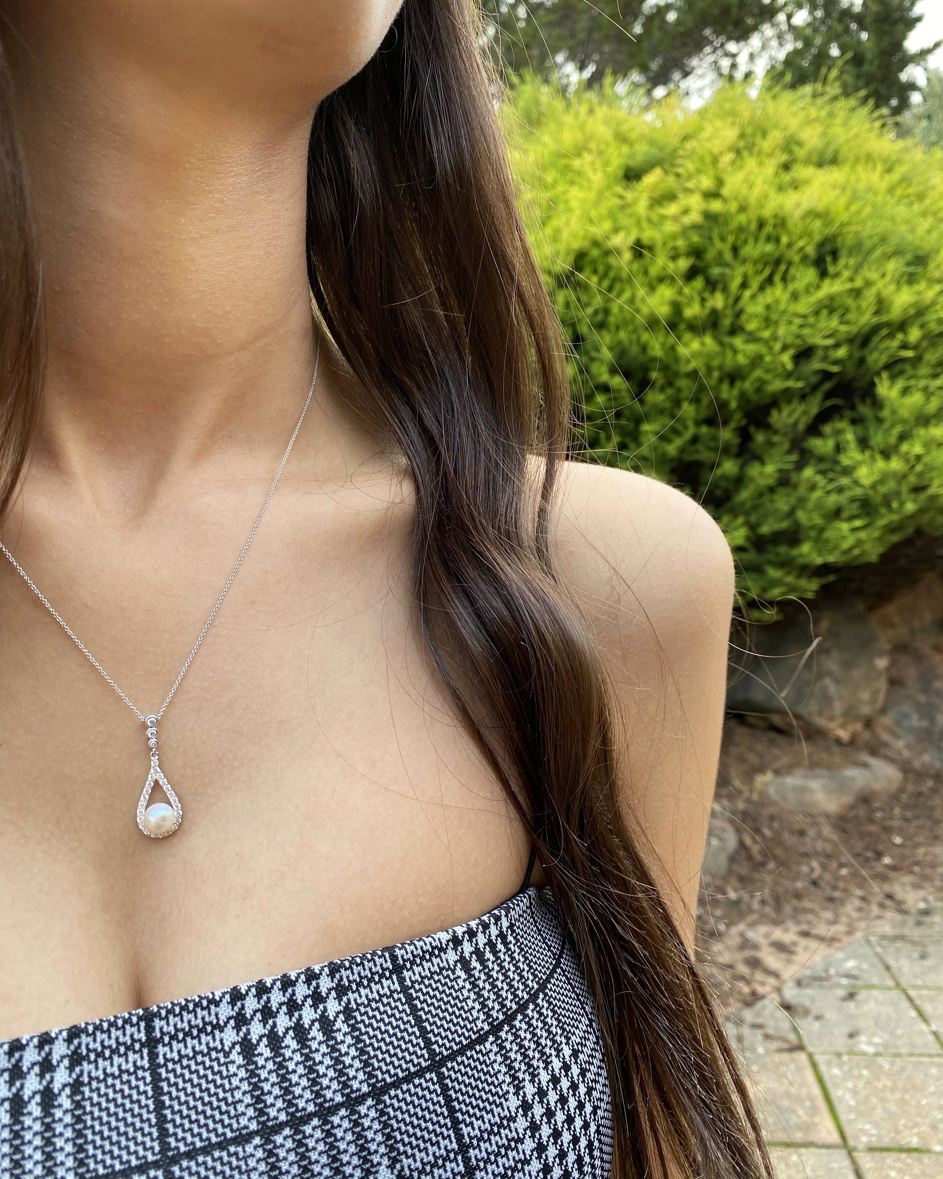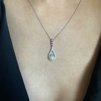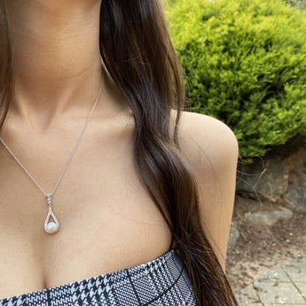 Sterling Silver Rhodium Plated Freshwater Pearl and Zirconia Teardrop Pendant