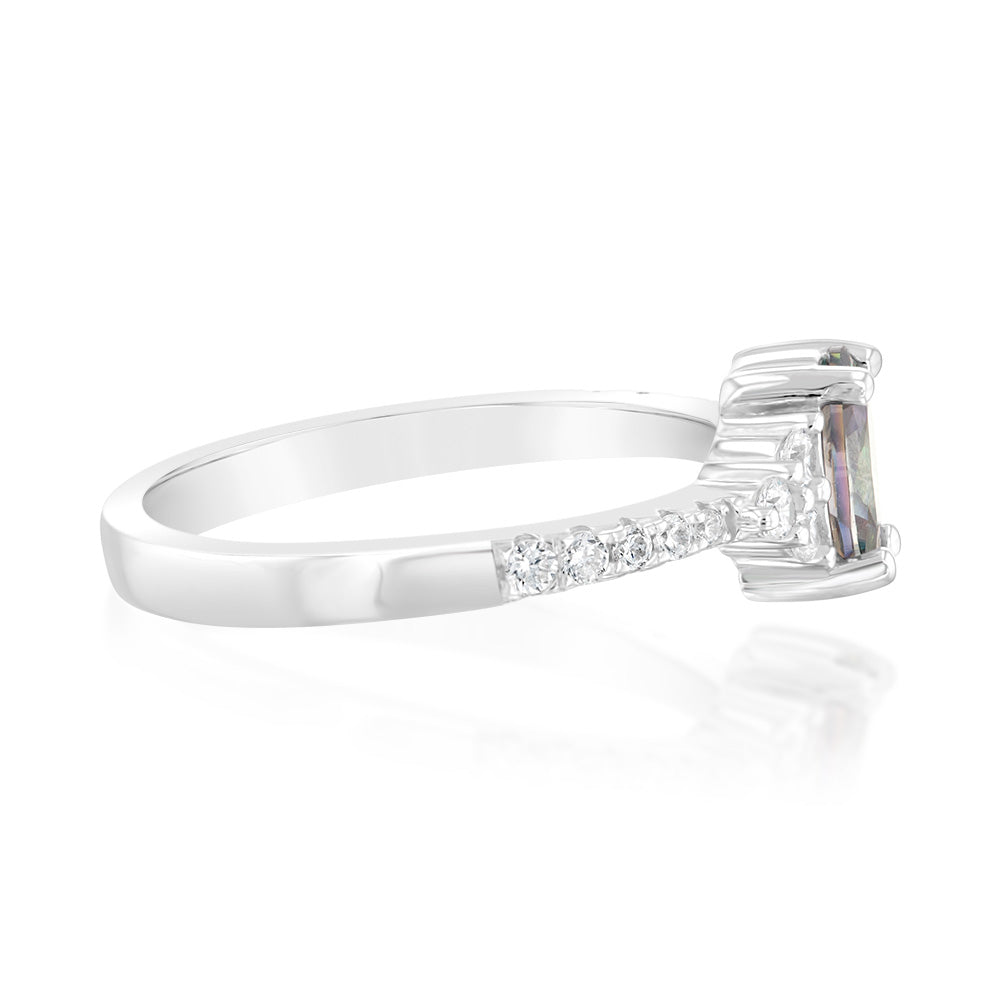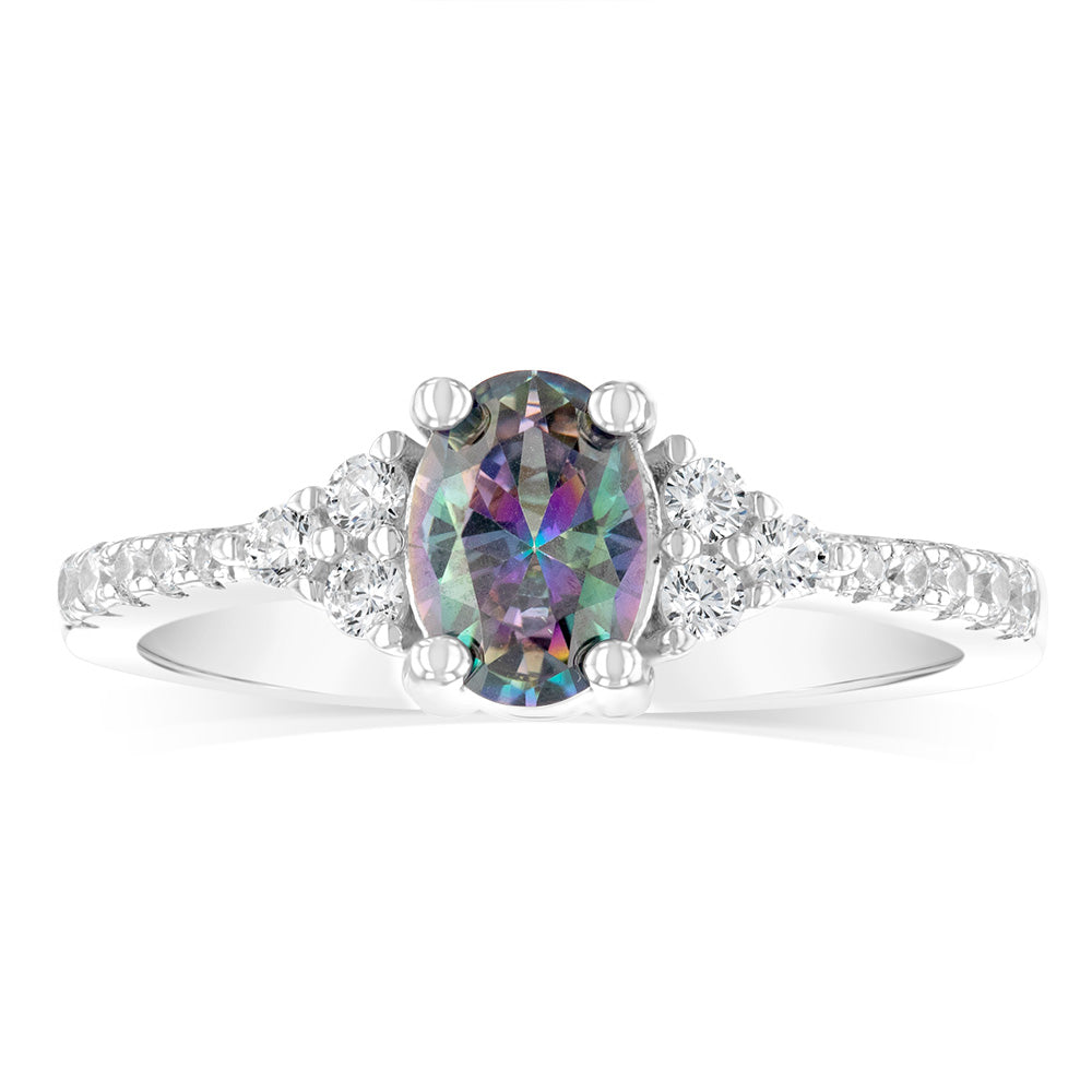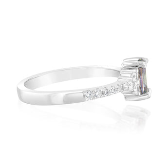 Sterling Silver Rhodium Plated Mystic Topaz Cubic Zirconia Ring
