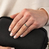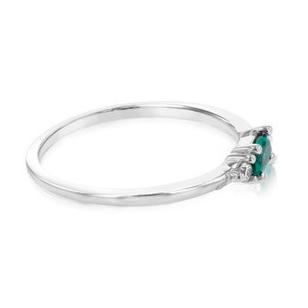 Sterling Silver Rhodium Plated Oval Created Emerald And White CZ Emerald Ring
