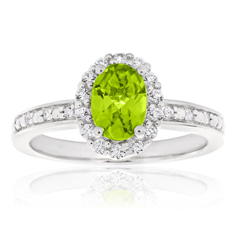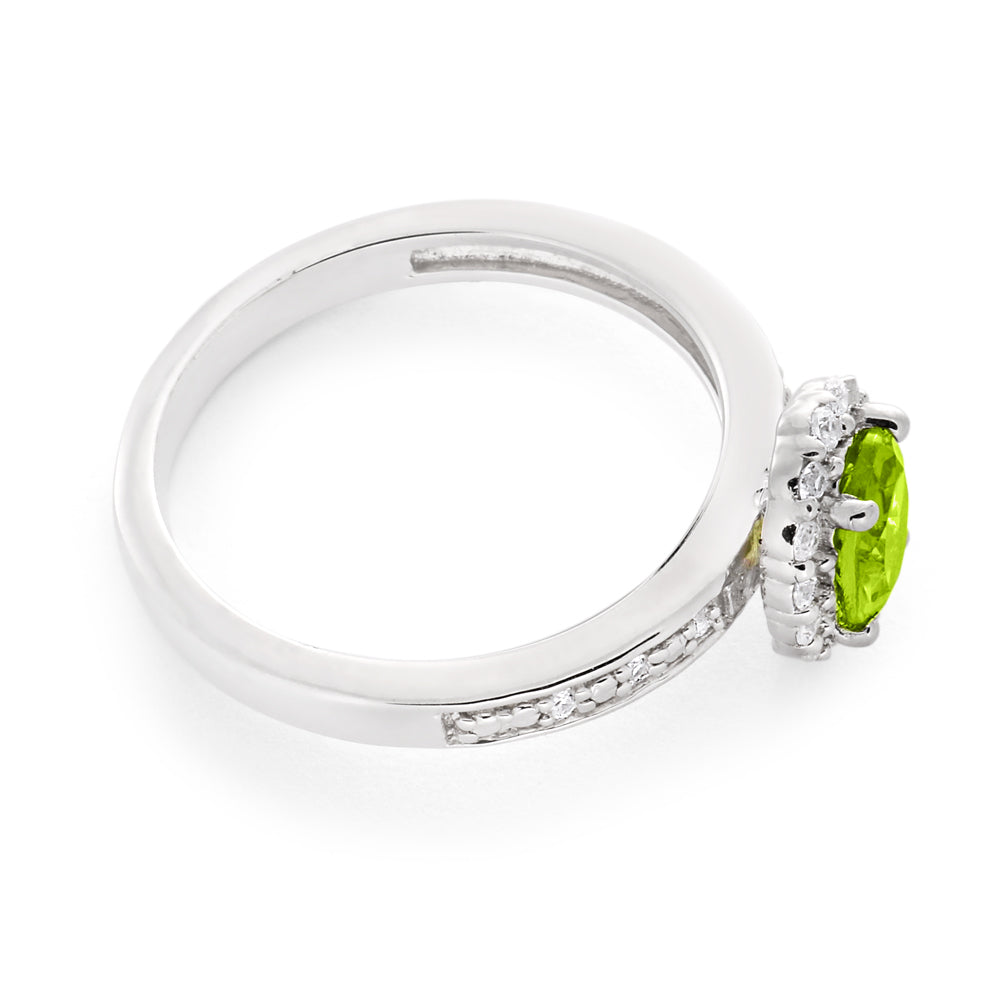 Sterling Silver Rhodium Plated Peridot & White Zircon Ring