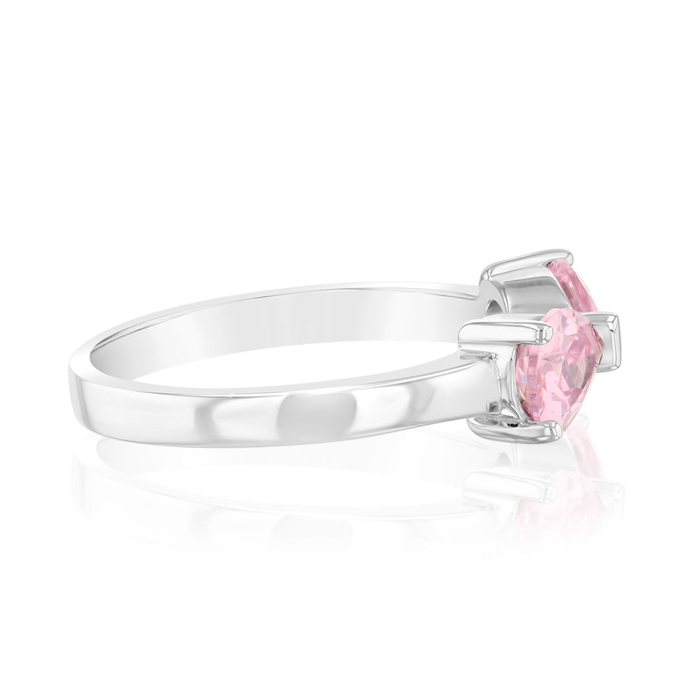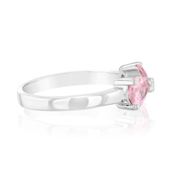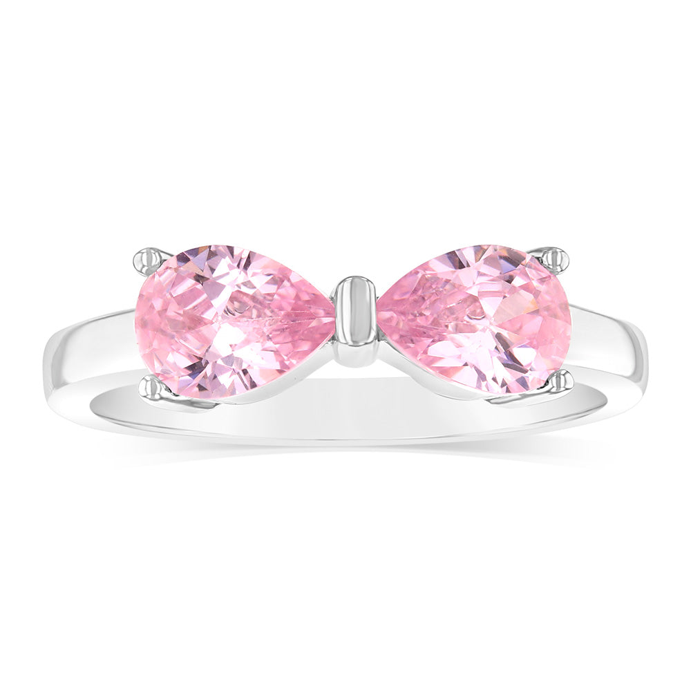 Sterling Silver Rhodium Plated Pink Pear Shaped Cubic Zirconia Ring