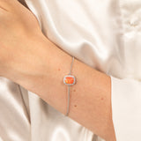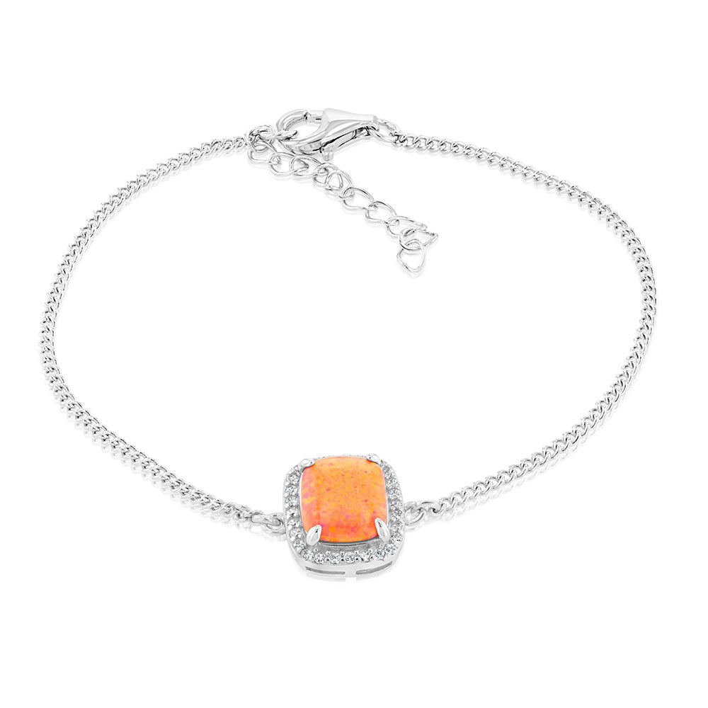 Sterling Silver Rhodium Plated Rectangle Created Orange Opal And White Zirconia 15.5+3cm Bracelet