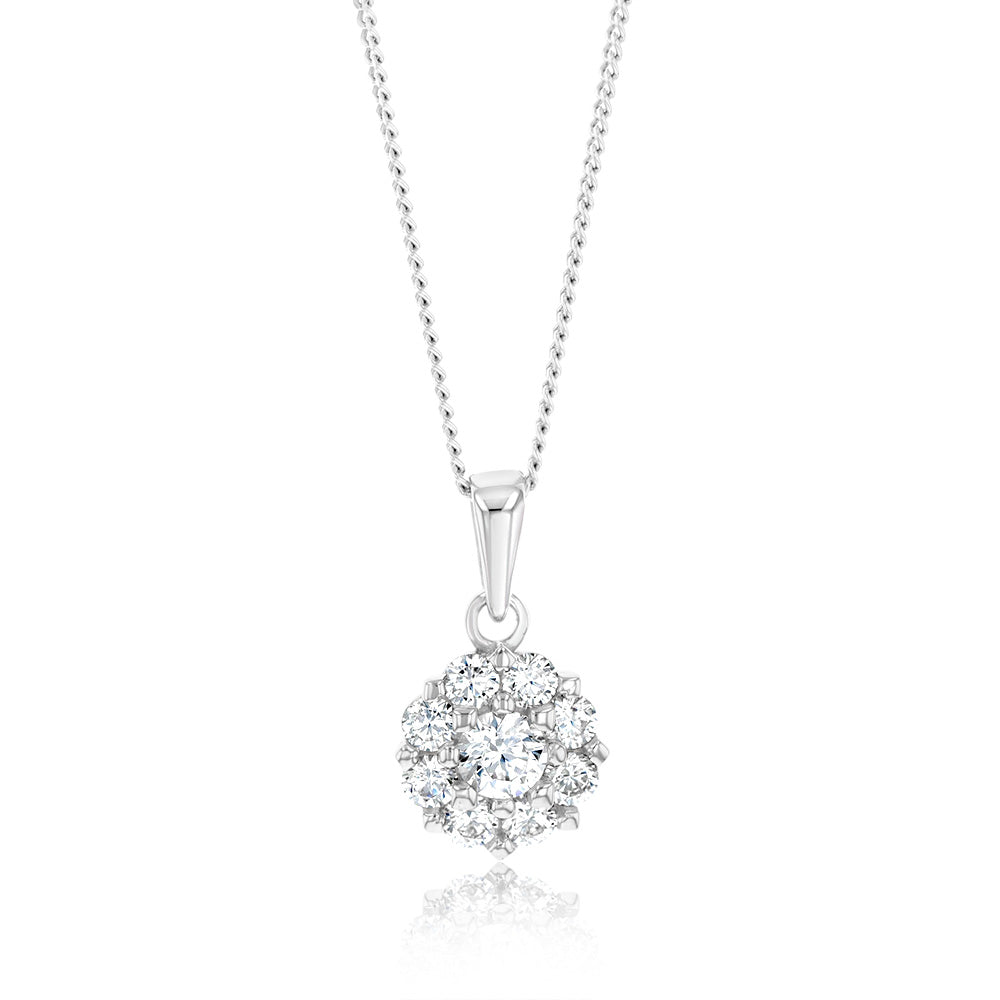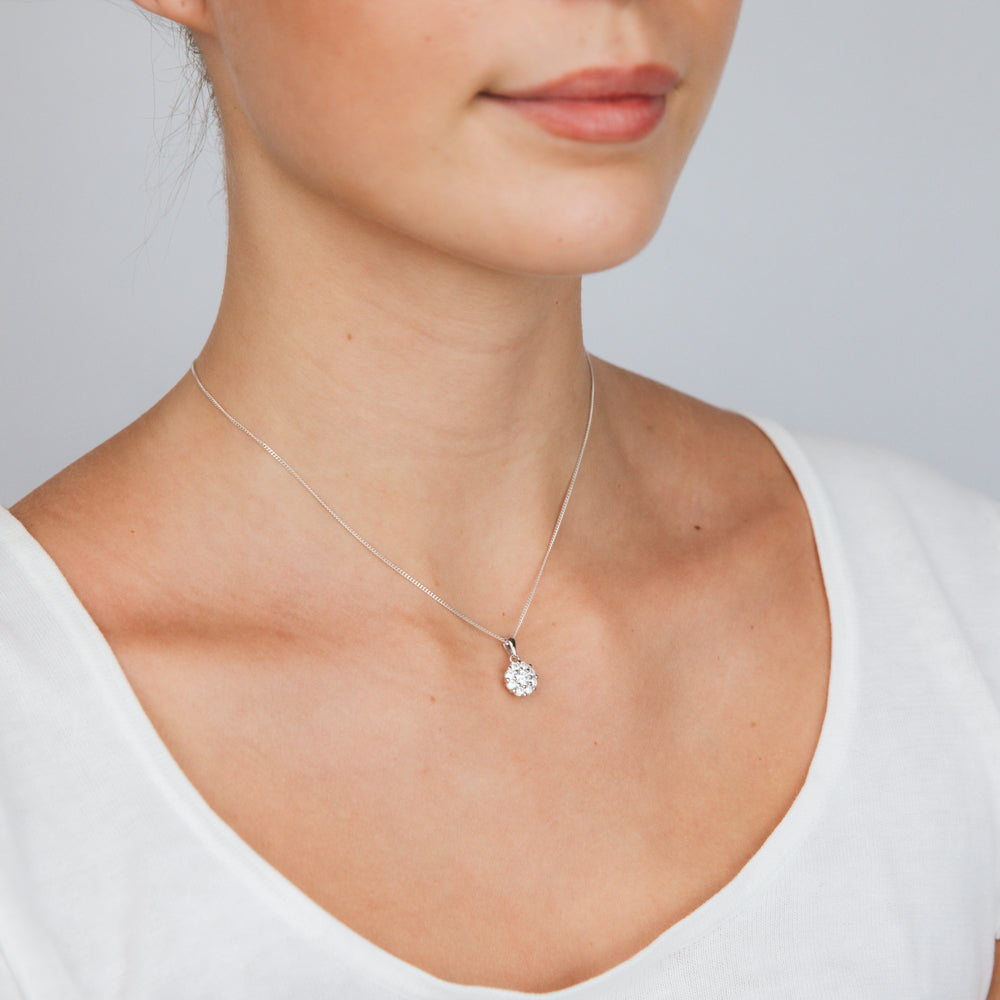 Sterling Silver Rhodium Plated Round White Cubic Zirconia Pendant