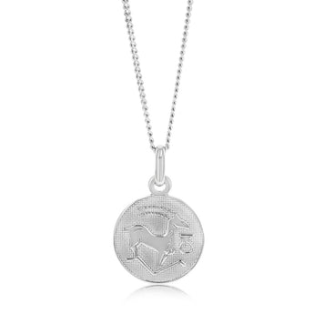 Sterling Silver Rhodium Plated Round Zodiac Capricorn Pendant