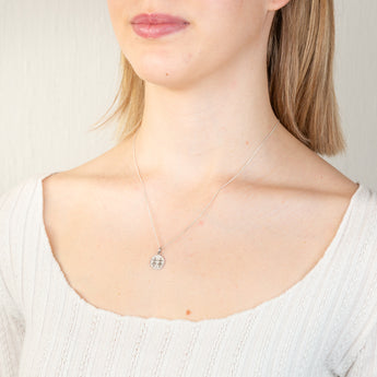 Sterling Silver Rhodium Plated Round Zodiac Gemini Pendant