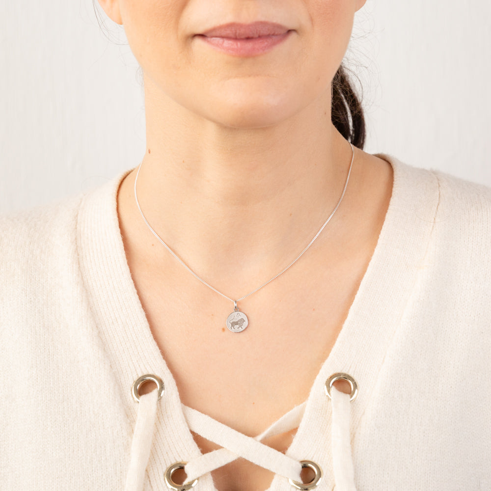 Sterling Silver Rhodium Plated Round Zodiac Leo Pendant