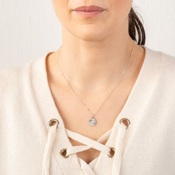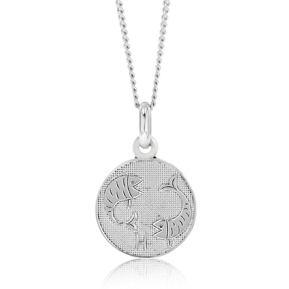 Sterling Silver Rhodium Plated Round Zodiac Pisces Pendant