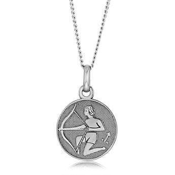 Sterling Silver Rhodium Plated Round Zodiac Sagitarius Pendant
