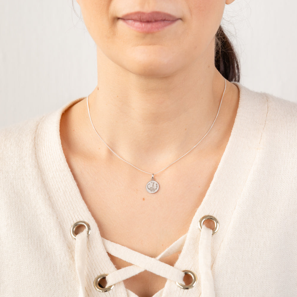 Sterling Silver Rhodium Plated Round Zodiac Scorpio Pendant