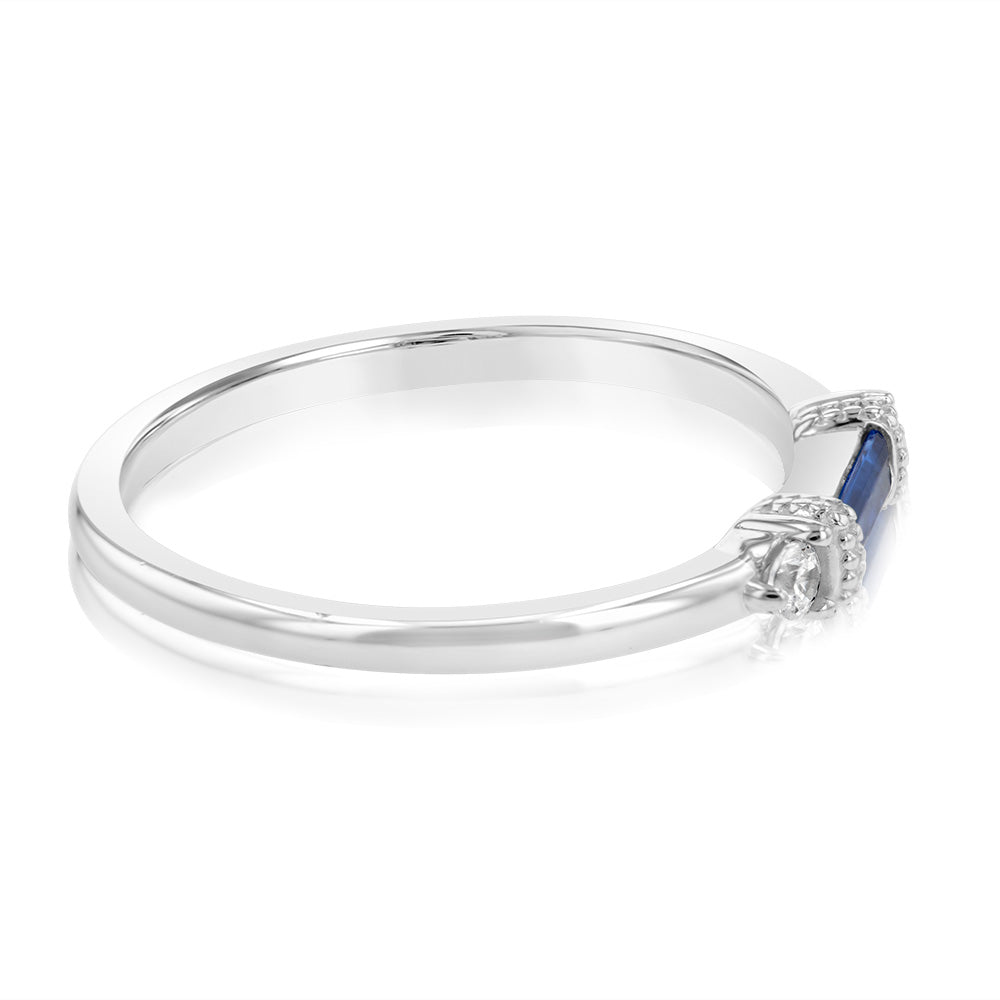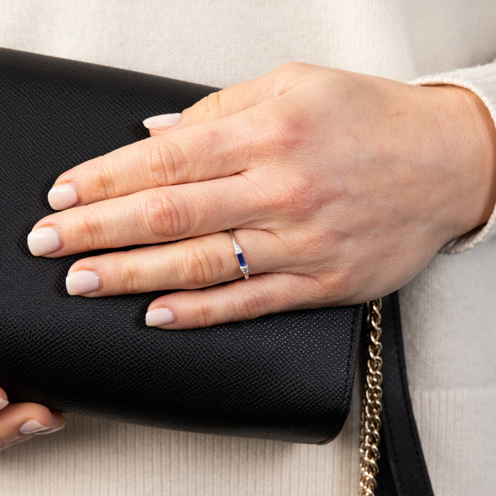 Sterling Silver Rhodium Plated Sapphire White Cubic Zirconia Ring