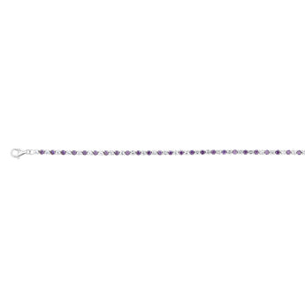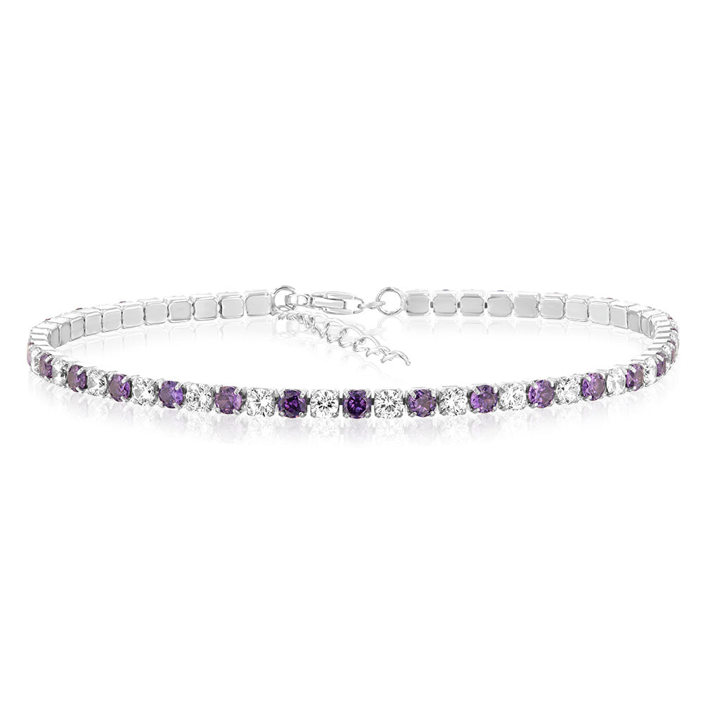 Sterling Silver Rhodium Plated White And Amethyst Round Zirconia 16.5+3cm Tennis Bracelet
