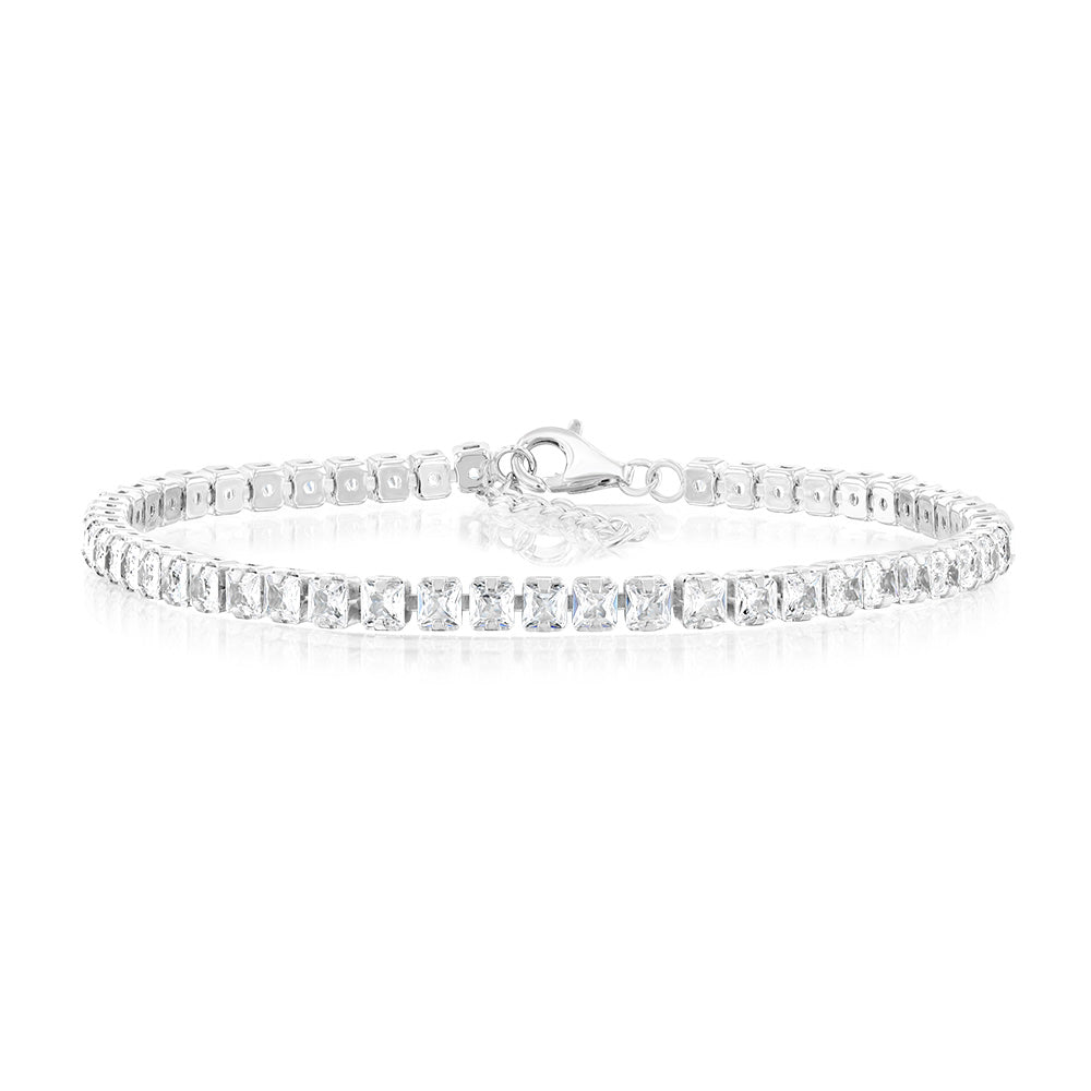 Sterling Silver Rhodium Plated White Baguette Zirconia 16.5+3cm Tennis Bracelet