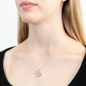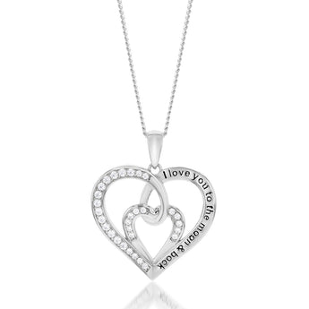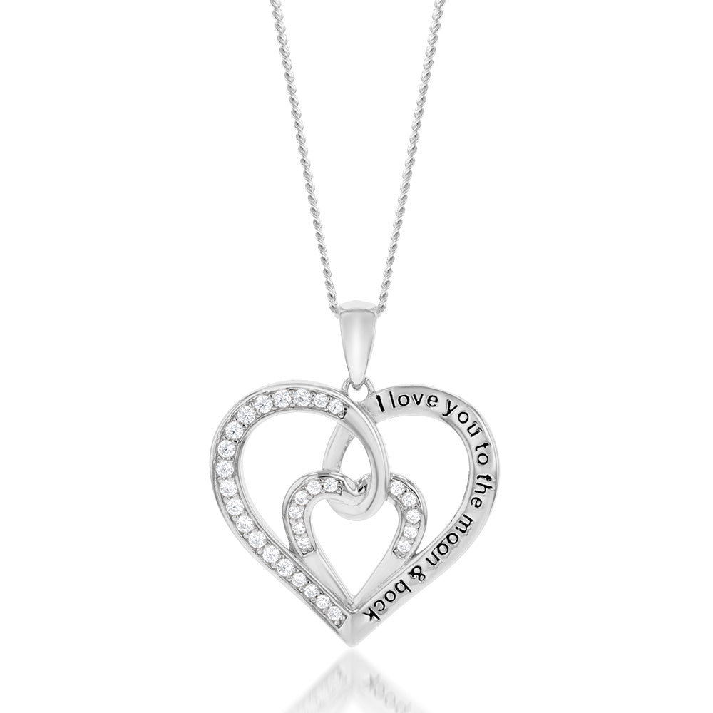 Sterling Silver Rhodium Plated White Cubic Zirconia Inscription Fancy Heart Pendant