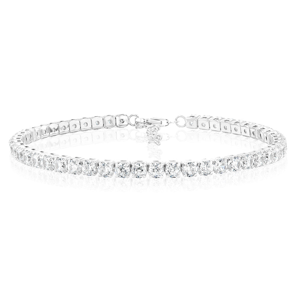 Sterling Silver Rhodium Plated White Round Cubic Zirconia 16.5+3cm Tennis Bracelet