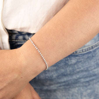 Sterling Silver Rhodium Plated White Round Zirconia 16.5+3cm Tennis Bracelet